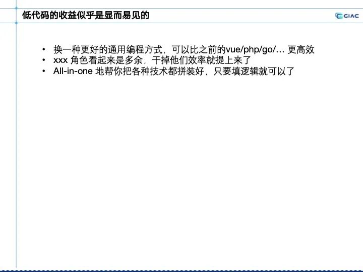 我们可以从实现低代码的技术里寻找提效的手段,但不要把任何提效的努力都打上低代码的标签。
