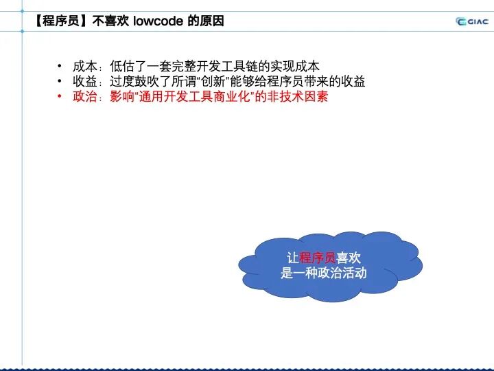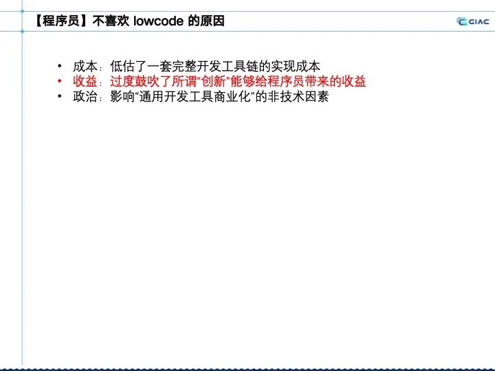 这里投入不足,很大程度是因为做这些东西成本巨大。这里又牵涉到了,什么情况下值得弄个低代码出来,多少收益才能抵消成本。