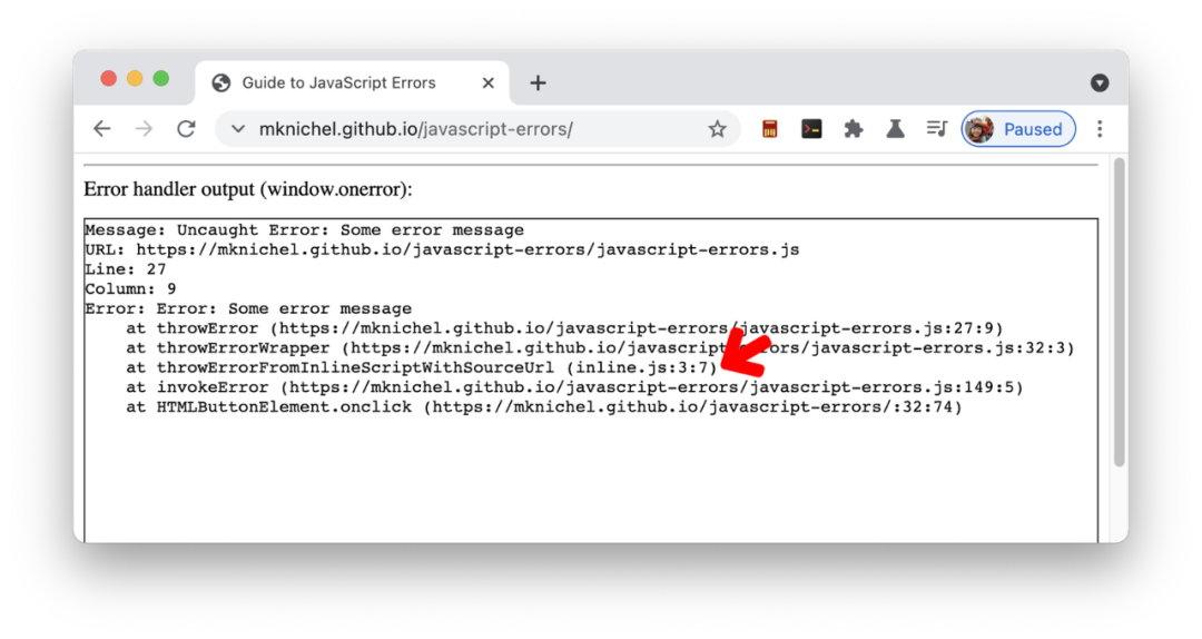 #sourceURL 行内脚本的错误堆栈信息DevTools 现在可以正确解析带有 #sourceURL 的行内脚本(inline scripts),并且还能针对调试这种情况,输出正确的错误堆栈信息